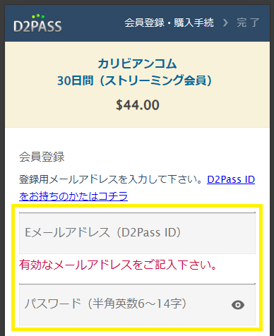 ④入会予定のプランを確認し、Eメールアドレスとパスワードを入力する