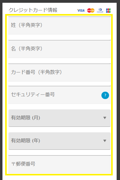 ⑤名前・カード番号・セキュリティ番号・有効期限などのクレジットカード情報を入力する