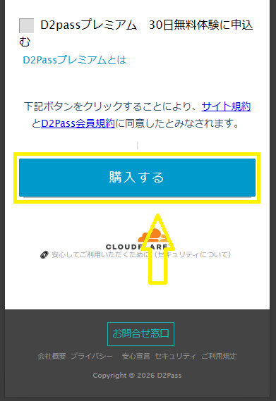 ⑥すべての情報を間違いなく入力したら、ページ下部の「購入する」のボタンをタップする